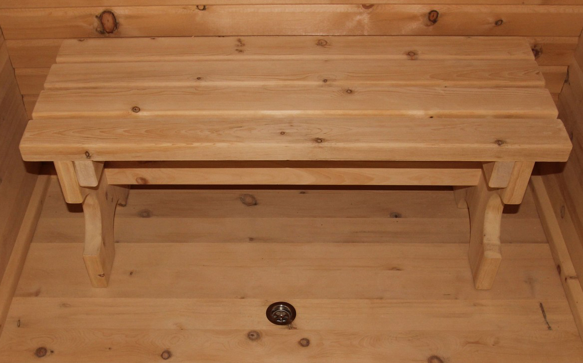Столик в раздевалке будет удобен при длительном пребывании в бане.