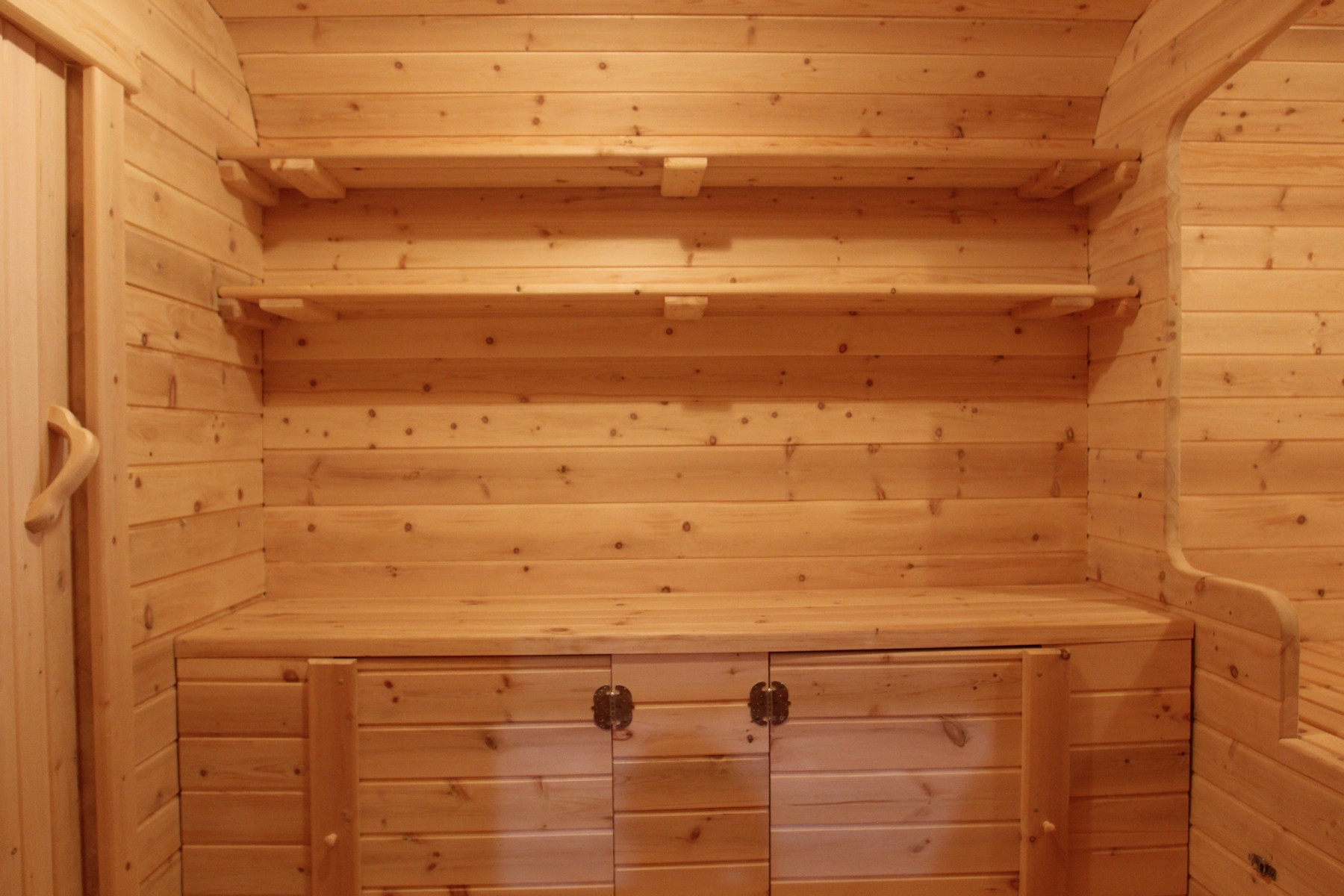 Обращаем Ваше внимание, что в стандартную комплектацию бани входят лавки в парной с обеих сторон. Дополнительно можно заказать полок открытого или закрытого типа!