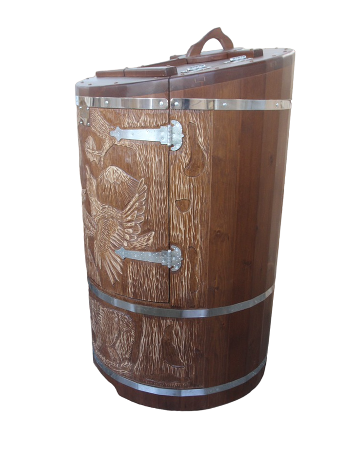 Горизонтальная двухрежимная фитобочка из кедра может быть использована как инфракрасная сауна и парная. Карбоновые излучатели отвечают за сухое парение и находятся на внутренней стороне дверцы. Влажное парение происходит за счет поступления горячего пара в фитобочку через паропровод. Горизонтальная форма позволяет принимать процедуры лежа. Внутренняя ручка из кедра облегчает открывание и закрывание двери во время парения. Такая модель наиболее удобна для оздоровительных центров.
