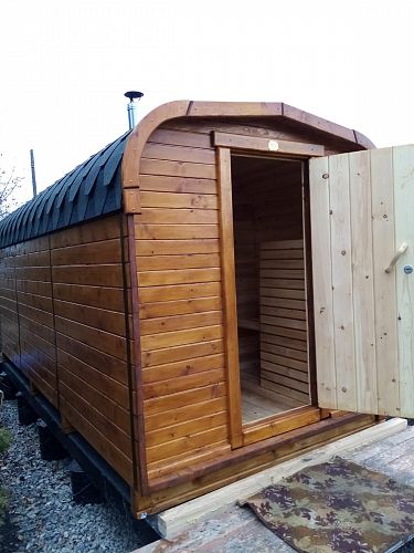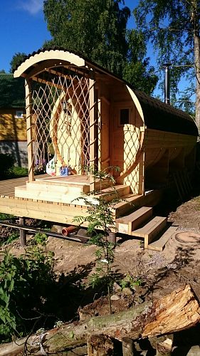 Баня-бочка получилась достойной! Время готовности бани - примерно 40 минут и можно париться. Считаю, это основным ее достоинством плюс конечно, оригинальный внешний вид. А также баня вполне экономная, дров требуется очень мало!